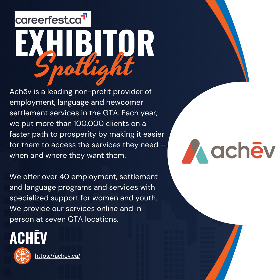 Achēv is a leading charitable organization that delivers employment, settlement, language, women, youth and technology solutions services in the GTA, throughout Canada and abroad, that is committed to creating faster paths to prosperity for clients. They also work collaboratively with our employer and community partners to ensure they have the tools and capacity to support others. Achēv is committed to making a positive difference in the diverse communities they serve.